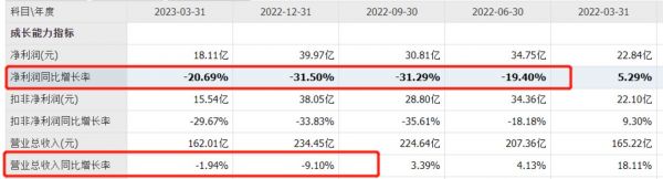在净利润方面,海康威视更是自2022年第二季度以来,已经连续四个季度出现净利润同比下滑。2022年2-4季度及2023年第一季度,海康威视净利润同比增长分别为-19.4%、-31.29%、-31.50%以及-20.69%。而在此之前,海康威视仅在2019年和2020年两个财年的一季度,分别出现单季度净利润下滑情况。