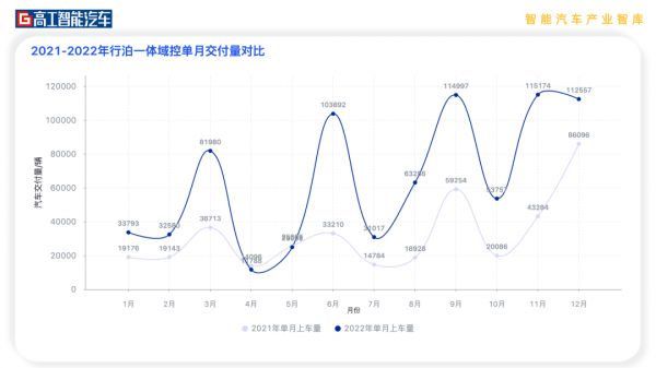 根据 IDC 统计,如今市场上 L2 级别驾驶辅助乘用车中,21.4%为域集中控制实现的, 即通过智能驾驶域控制器实现的,大部分车企还是使用传统分布式控制的方式实现 L2 级别驾驶辅助,根据高工智能汽车研究院的数据,具有行泊一体功能目前为3.91%,整体市场处于萌芽阶段,但增长度速度很快。2022年中国市场(不含进出口)乘用车前装标配搭载行泊一体域控制器交付上险为77.98万辆,同比增长高达99.63%。按照高工智能汽车研究院的预测,2023年行泊一体域控方案交付量有望突破150万辆,未来三年释放行泊一体市场空间约1000万辆。