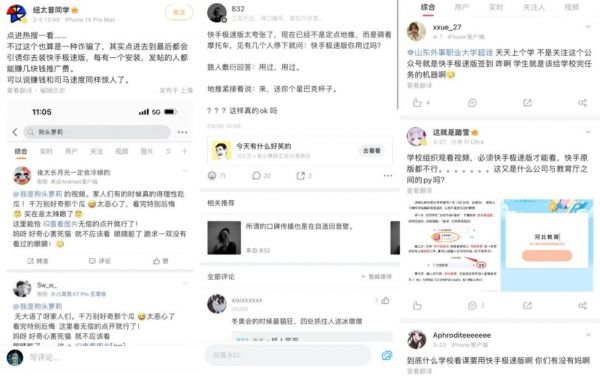 无论是微博、贴吧还是街头、教室,都能看到快手极速版无所不用其极的推广身影。在微博上,为了几块钱推广费,一些人会利用热点事件中网民的好奇心(比如狗头萝莉的照片)去诱骗用户下载快手极速版。在线下,快手地推已经不再是蹲点驻扎,而是骑着摩托车见人就问:快手极速版你用过吗?为了做好七日留存,地推人员还会在微信上每天提醒你刷视频打卡。在学校,不少学生不得不下载快手极速版,以便收看学校安排的课程、讲座。