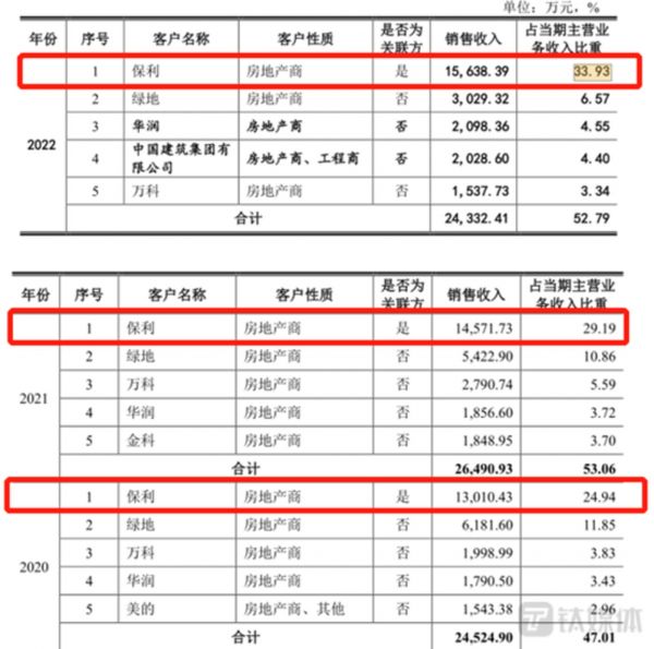 可见,除了华润和保利每年加大对麦驰物联的“采购”之外,其余房地产商的采购额均在波动,特别是保利,报告期内,麦驰物联向保利产生的销售收入分别为13010.43万元、14571.73万元、15638.39万元,分别占当期营业收入的24.94%、29.19%、33.93%,而保利也始终霸占着麦驰物联的第一大客户头衔。