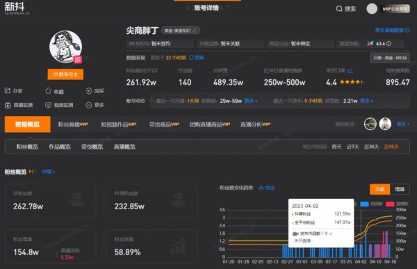 新抖数据显示,这两条内容均是二人账号目前获赞最高的视频,发布后二人账号流量一路飙升,4月2日至今,“临期也狗”抖音涨粉130万,快手账号“食品贩子也狗”涨粉16万,“尖商胖丁”抖音涨粉111万,快手涨粉43万。