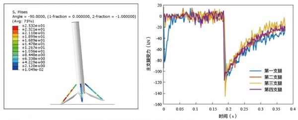 火箭着陆过程中会受到冲击载荷,其内部缓冲器设计是着陆支腿的关键组成部分,用于吸收火箭着陆期间的动能。其次,支腿具有足够的刚度和强度,保证碰撞过程中不被损坏,并经过简单检测维修后能够重复使用。
