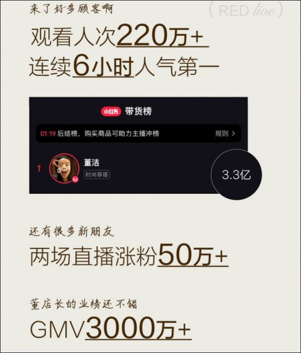 董洁直播带货的破圈,让小红书的直播业务有了标杆,小红书也趁热打铁,进行组织架构调整,将直播业务提升为独立部门,统一管理直播内容与直播电商等业务。