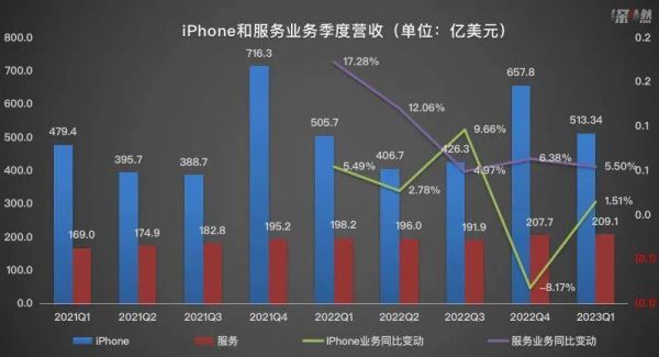 其中,iPhone在苹果营收中占比超54%,依旧是苹果最大的收入来源,达513.3亿美元,同比增长1.5%,高于市场预期的489.7亿美元。在一季度手机大盘整体处于下行周期时,iPhone的逆势增长,显得格外亮眼。