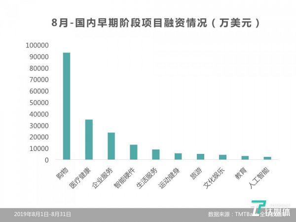 「潜在投资」将A+轮及A+轮之前的融资定义为“早期融资”。根据钛媒体TMTBASE全球数据库显示,2019年8月发生在早期阶段的VC/PE类融资事件共计193起,融资规模约为12.29亿美元,折合人民币约87.30亿元(国外项目共9.47亿美元,国内2.82亿美元)。