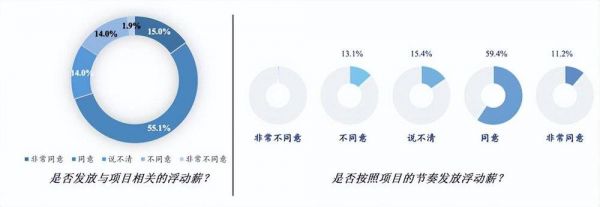 数据显示,有超过70%的企业浮动薪酬与项目高度关联,初步体现了“平台型组织”激励机制设计的雏形。另外,有超过70%的企业浮动薪酬是按照业务节奏发放的。这个衡量标准非常关键,一定程度上说明了企业发的是不是“来自市场的钱”。