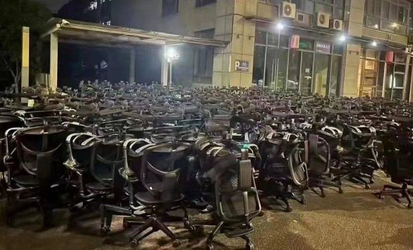 小肖参与了那次的办公家具回收。当时,站在办公室门口,亲眼看见桌面、地面上散落的文件,办公椅子各种朝向、随手一放,角落摆放的直播打灯设备,有一盏倒在地上。小肖透露,像这样破产的小型公司,不到1周时间就能把办公室家具全部收完。