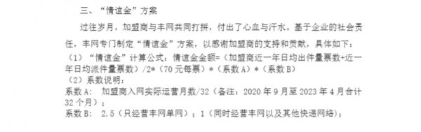 目前丰网提供的解决方案中,如果加盟商在过渡期内选择退网,丰网则100%退还加盟费、100%退还押金、100%退还其账户余额,并另送出“情谊金”。