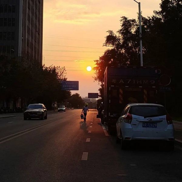 难得的早下班看见夕阳,作者供图