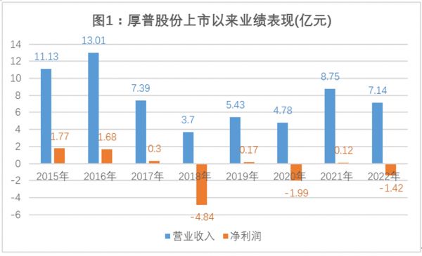 厚普股份上市后经营业绩始终堪忧。上市首年,公司报出的成绩单就是增收不增利,2015年实现营业收入11.13亿元,同比增长16.25%;净利润1.77亿元,同比下降1.69%。此后业绩直接跳水,2017年营业收入下滑43.20%,净利润下滑82.40%;2018年营业收入再次下降49.87%,净亏损高达4.84亿元。