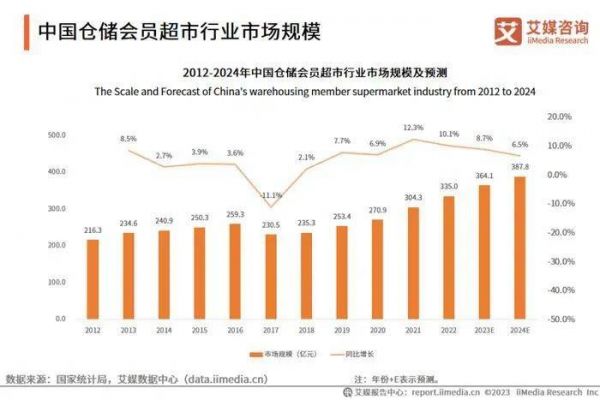 但有数据显示,2012~2022年中国仓储会员超市行业市场规模持续增长,2022年中国仓储会员超市行业市场规模达335.0亿元,同比增长10.1%,预计2024年将达387.8亿元。