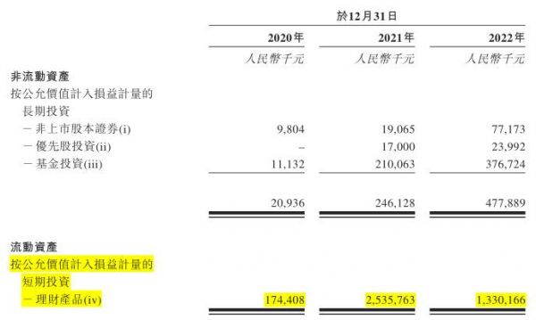 为增加生产能力、开拓新的业务领域等,2022年,英矽智能花0.11亿美元购买机器人实验室相关物业及设备;声通科技花1.03亿元收购无形资产,花近0.2亿元购置物业及设备。与之不同,第四范式投资现金流变动较大主要因买卖理财产品,存放、提取定期存款等。招股书显示,第四范式的理财产品从截至2021年12月底的25.36亿元减少至截至2022年12月底的13.3亿元。