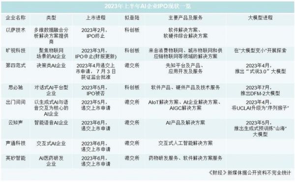 据《财经》新媒体不完全统计,仅上半年,就有第四范式、出门问问、云知声、声通科技、英矽智能等多家AI企业进入IPO进程,申请时间多在第二季度,拟上市地多为港交所,其次创业板。其中,第四范式为四闯港股,云知声亦是再次申请。