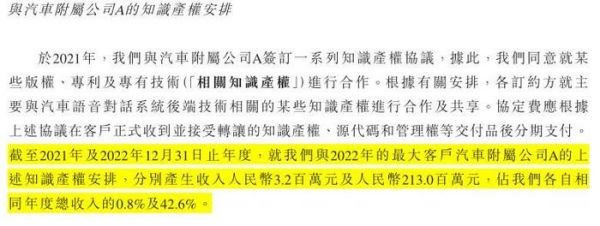 据招股书显示,2021年来自前五大客户的收入占比仅为37%;2022年该占比增至62.8%,最大客户汽车附属公司A为出门问问的关联方。其中,2021年出门问问来自最大客户的收入占比为24.1%;2022年来自最大客户的收入占比增至42.6%,全为与汽车附属公司A的知识产权合作,金额达2.13亿元。值得一提的是,上述毛利率较高的知识产权收入增加,使得AI企业解决方案的毛利率从2021年的62.0%增至2022年的94.7%,最终快速抬升了综合毛利率,进一步影响出门问问扭亏为盈。