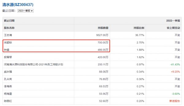 此前,宋颖标是同生环境的副董事长。2016年,清水源以发行股份的方式并购同生环境。宋颖标、钟盛由此取得清水源的股份并跻身前十大股东行列。