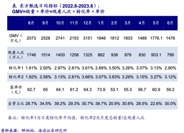 货盘方面,东方甄选整体自有品牌约20个,海通证券数据显示,目前自营GMV占比约为30%,在APP和抖音均衡分布,但在第三方品牌方面,APP内以食品和家居生活为主,少见大牌。而抖音直播间品类更多,且有一些高客单价的知名品牌。