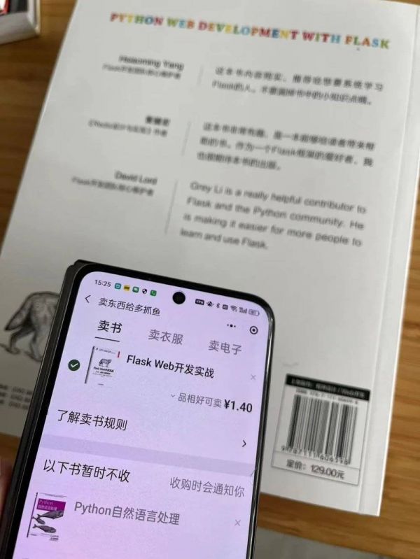 一本 2018 年出版、总页数厚达 704 页、原价 129 元的《Flask Web 开发实战》,给我的报价是:品相好可卖 ¥1.40 元。