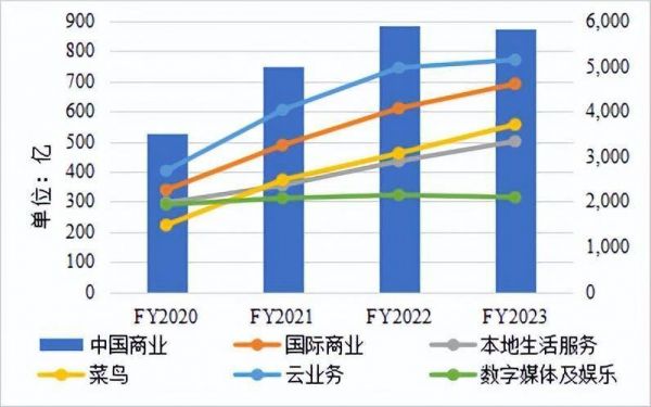图4:阿里各分部收入变化走势图,资料来源:穆胜咨询、阿里财报
