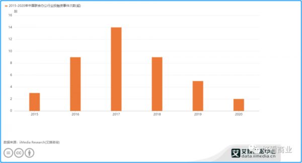 据艾媒数据中心的数据,自2015年开始,共享办公相关的投融资也多了起来,2017年达到了14起。