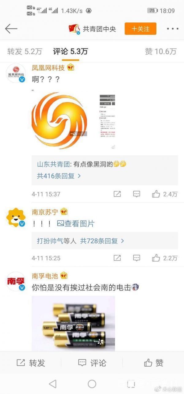 就在这条动态下面,更是有多家知名公司纷纷响应,表示其企业的标志也已被视觉中国侵犯版权。凤凰网科技、苏宁、南孚电池等公司均在微博中晒出证据,显示其企业标志已被视觉中国据为己有。