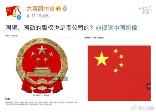 官媒共青团中央更是发布动态点名视觉中国。