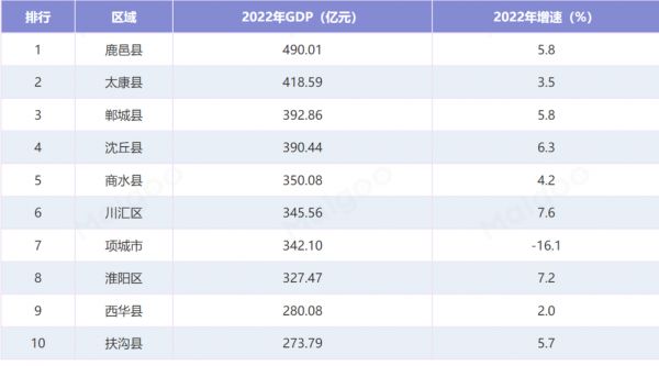 鹿邑县去年的GDP在周口市各县中排名第一
