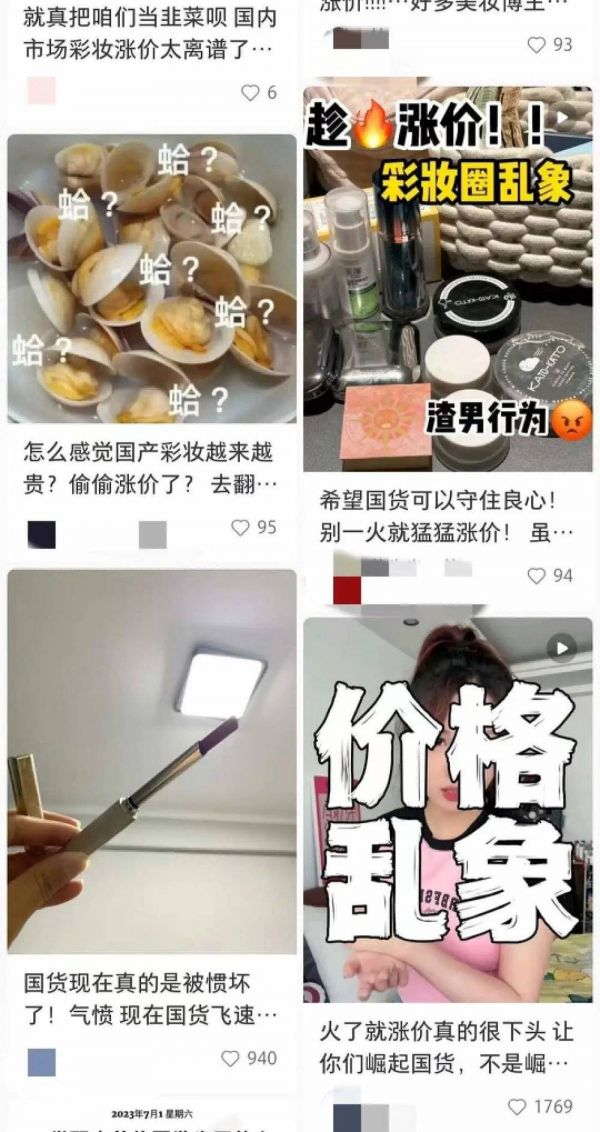 图/小红书上,不少消费者吐槽国货彩妆偷偷涨价