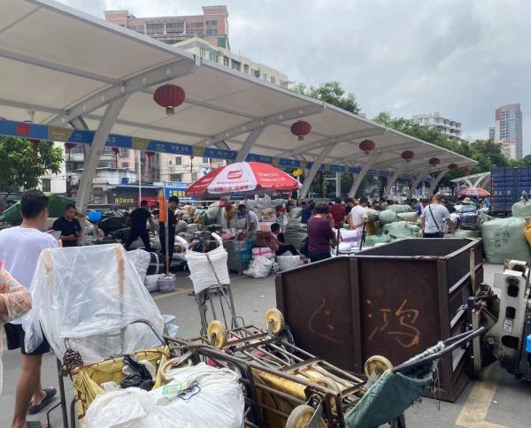 推着板车的散工来往于仓库之间送货,这是批发市场的特有工种,他们按件收费,一个大包裹约10~15元。物流小哥也逐渐向批发市场聚拢,为了招揽生意,他们遍布批发市场的每一个楼层,累了就席地休息。