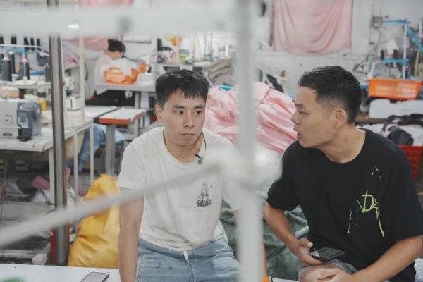 跟着忧子和老刘的脚步,我们进到了一个制衣厂。在这里,老刘要给老板做一个“访谈”,这也是他的新栏目,“主要问问大家对未来的计划和期待,我相信这个视频一定会火”。