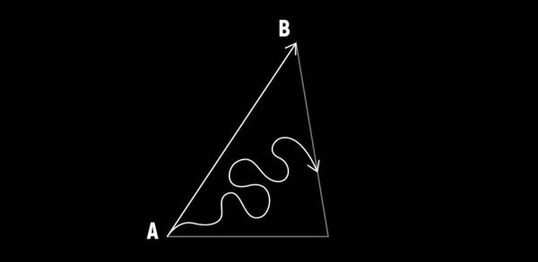 第一条,是从山脚(A)点出发,瞄准山顶(B)点,选择无数个弯弯绕绕的节点,试图寻找捷径,躲避困难,找到一条最短的路径。