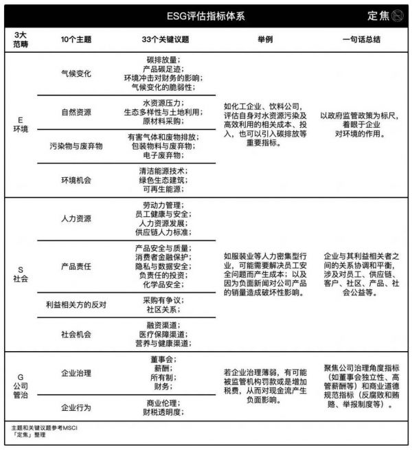 在这份大纲下,重点描述E、S、G范畴里的哪些关键议题,一般会参考企业所在交易所的ESG披露指引,以及MSCI等第三方机构的ESG评级指标体系。