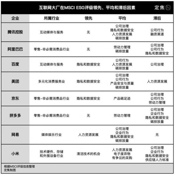 MSCI指出,上述互联网公司在公司治理、劳动力管理、数据安全和隐私保护等方面,还有待加强。