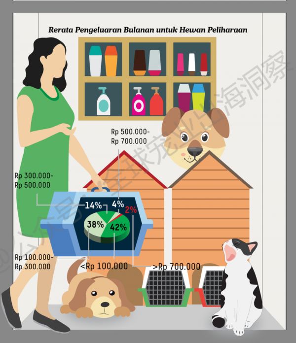 宠物支出方面:具体预算取决于宠物的类型和数量。根据Rakuten Insight的调查结果,印尼宠物主每月花费的最高费用在10万至30万印尼盾(或卢比)之间。