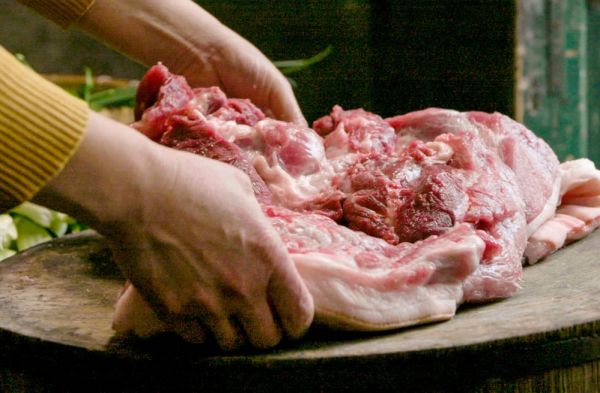 他的铺子里,大多肉都被切成1.3~2.3斤的块,方便让客人自己选。客人说目标买一斤?那到手的就是1斤3两,毕竟大多数客户不在乎多出来3两肉,一推一就就多卖出去一点。当然也有喜欢现切肉的,里面后腿肉最好卖,适合家里炒。和卖切糕类似,肉贩子一刀切下来,必然多于你的目标,没办法,这就是肉贩子惯用的伎俩。