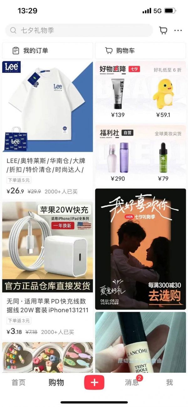 当我打开小红书电商时,我最先看到的是3.18元的iPhone充电线——这个价格比拼多多还便宜。