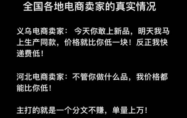 “我给南方供货的时候他们卖3块,出厂价是2块5,那我自己开店铺只卖2块4不就行了。”这是许多河北中小商家初入电商市场时的朴素观念。