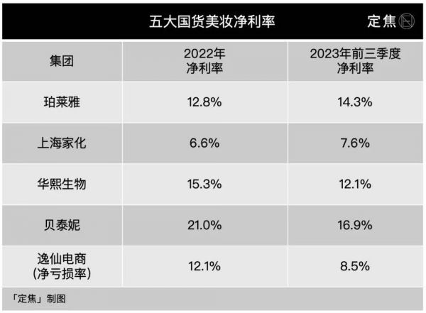 按照今年前三季度的盈利能力,五家国货美妆可以分成三个梯队。