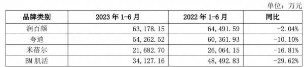 2018-2022年,功能护肤品业务高速发展,成为华熙生物的增长大盘。进入2023年,华熙生物的护肤业务增长乏力,其主力品牌润百颜、夸迪等,都出现不同程度的营收下滑。