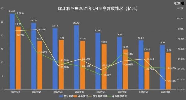 今年11月15日和12月7日,虎牙和斗鱼分别发布2023年Q3财报,营收分别同比减少30.72%和24.42%,再创新低。两家的利润情况有所好转,处在盈亏平衡、微微盈利的状态,但不少行业人士认为,如此关键的时刻,虎牙和斗鱼的相关传闻将不利于其Q4的成绩。