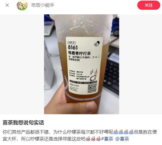 喜茶也在下场卷柠檬茶。(图/小红书)