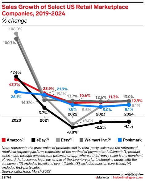站在年底纵观全年,今年美国零售市场电子商务销售额增长10.2%,达到3845.7亿美元,但这一增长很大程度上源于消费者由于会员计划的粘性,而将更多购物集中在Amazon Prime和Walmart+上。
