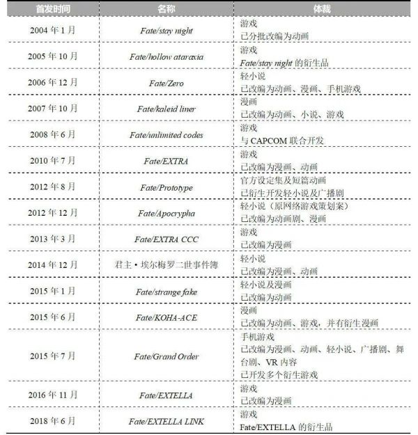 我们不妨先看一个二次元爱好者很熟悉的案例。型月(Type-Moon),这家日本游戏公司起源于1998年成立的一个玩家同人社团,以编剧奈须蘑菇、画师武内崇二人为灵魂人物。在发布了轻小说《空之境界》、独立游戏《月姬》之后,型月于2003年正式转型为商业公司,并于次年推出了二次元历史上一部划时代的游戏——《Fate/Stay Night》。该作品以“圣杯战争”为背景设定,以“美少女亚瑟王”这一颠覆性的角色人设吸引了大批粉丝,为型月打开了商业化成功的道路,也开启了迄今长达二十多年的“Fate宇宙”。