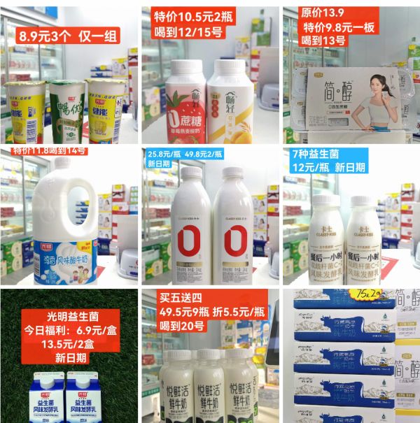 “从这个月起,除了牛奶,本店也开始售卖各类儿童玩具,价格实惠,欢迎上门。”张红在400多人的奶站群里@所有人。随后,她又将整理好的当日牛奶促销信息发到群里:伊利畅轻酸奶原价8.5元一瓶,现10.5元两瓶;简醇零蔗糖酸奶,原价13.9一板,现价9.8元一板;小瓶悦鲜活,买5瓶送4瓶,折后5.5元一瓶......