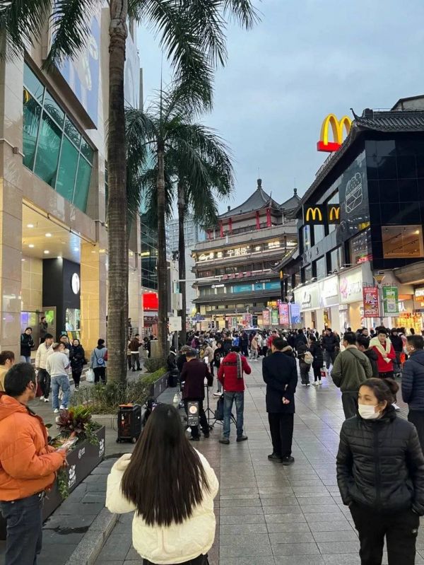 东门的主街大屏幕上,好像播放着“东门大舞台,有梦你就来”一样,吸引着各路网红齐聚主街。