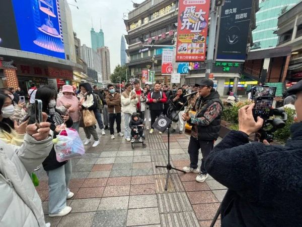 他在东门直播街弹唱了5天,便已经在现场吸引了两百多位粉丝关注了他的号,为后续的直播做准备。