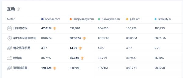 目前文生图、图生视频工具已经出现集中效应,Midjourney、Stable Diffusion、Runway和Pika等产品成为用户最主要的选择。这些产品的迭代都很快,彼此的竞争非常激烈,以周为单位变更效果领先的产品。