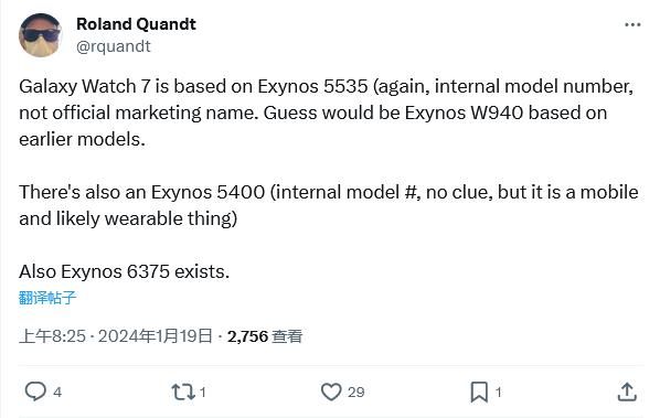 IT之家 1 月 20 日消息,消息源 Roland Quandt 爆料称,三星 Galaxy Watch 7 智能手表将采用 Exynos W940 芯片。