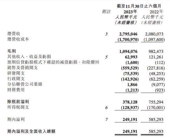 经调整的净利润为5.085亿元,而2023财年上半年调整后净利润为去年同期为6.01亿元,2023财年下半年调整后净利润为4.883亿元。