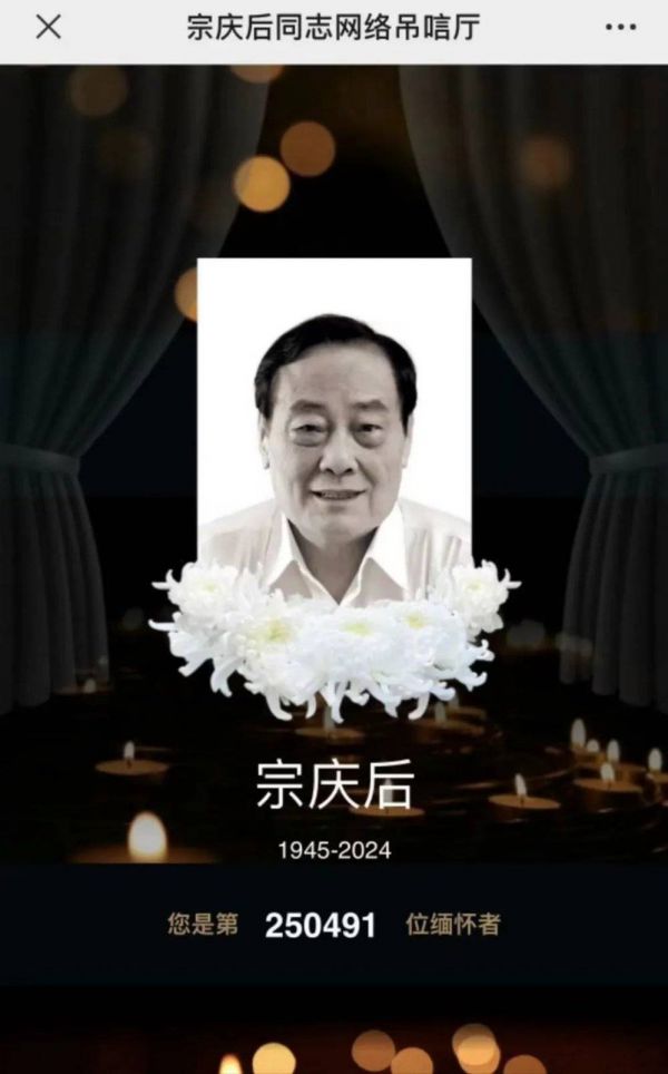 由于前来现场悼念的人数太多,娃哈哈官方于26日还开设了宗庆后同志网络悼念厅。截至28日上午10点,宗庆后网络悼念厅的祭奠人数已经超过25万人。