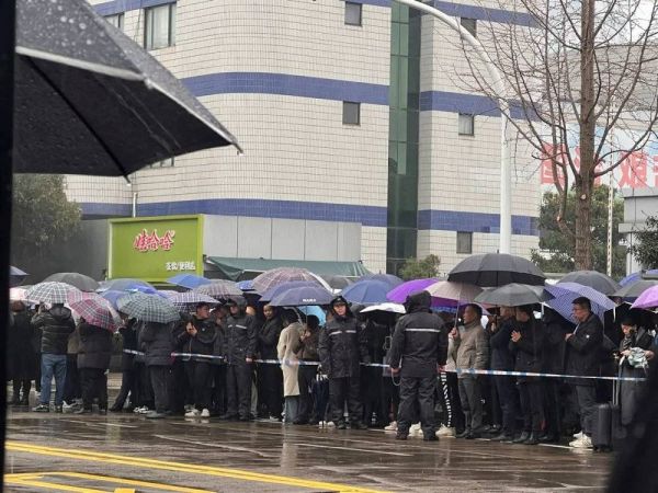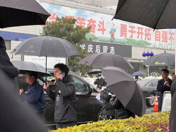 尽管下着大雨,温度仅为6度,雨从早上一直下个没停,但早上八点,就有许多人来到了娃哈哈下沙基地的北门门口。上午10点,告别宗庆后的追思仪式在这里举行。